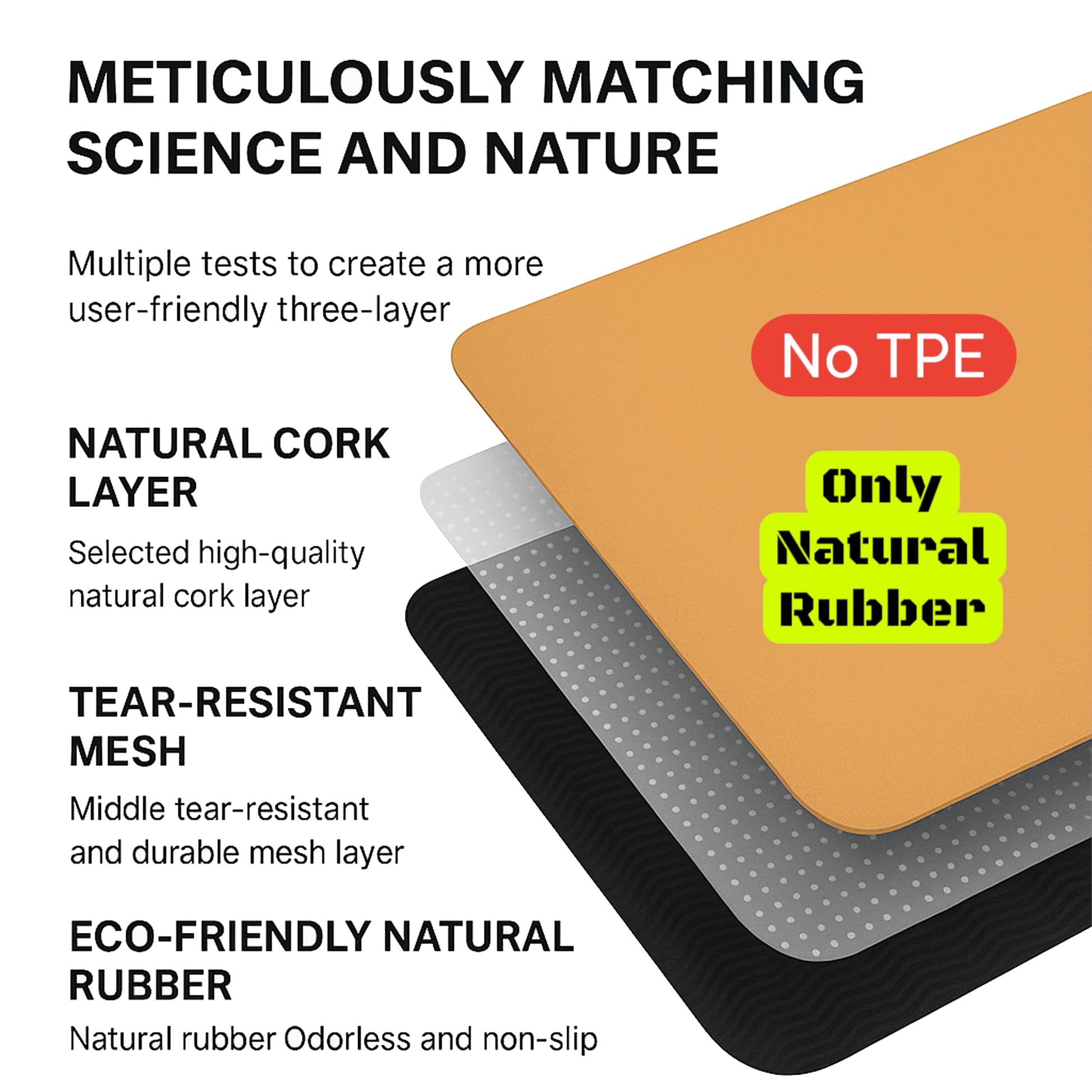 - 🌱 Tapis de yoga 100 % naturel : surface en liège certifié FSC et base en caoutchouc naturel, sans plastique ni mousse synthétique.